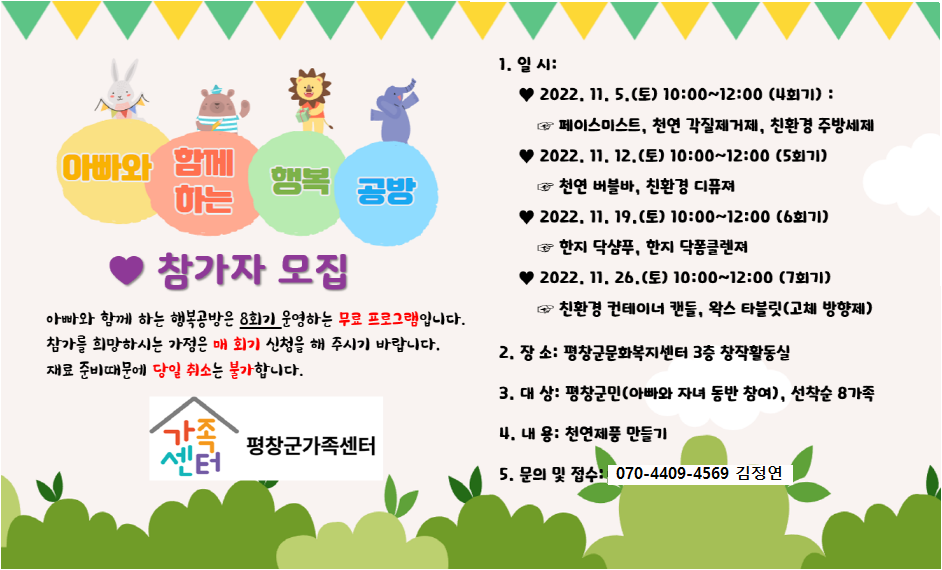 평창군가족센터에서 아이와 함께 좋은 추억 만드세요~