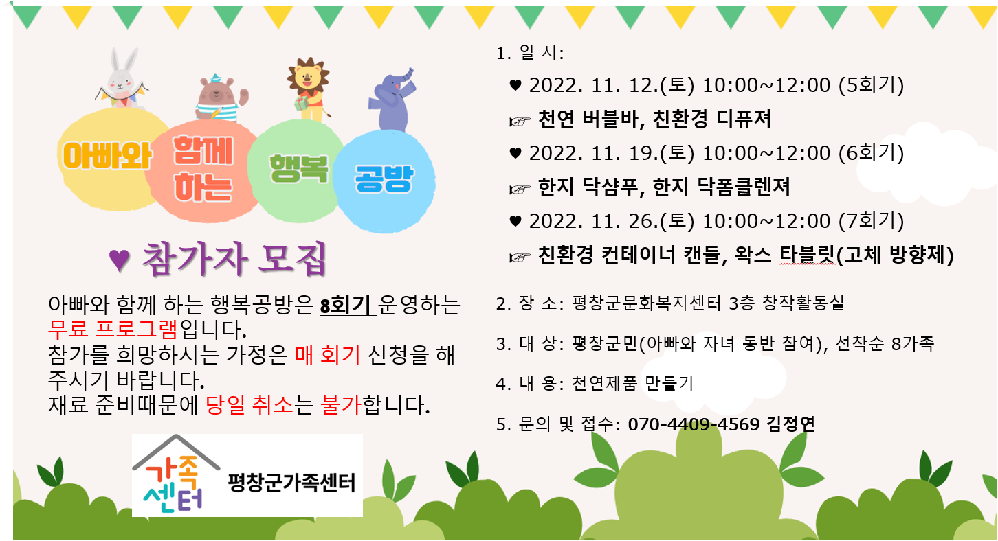 [평창군가족센터]아빠와 함께 하는 행복공방 프로그램 참가자 모집