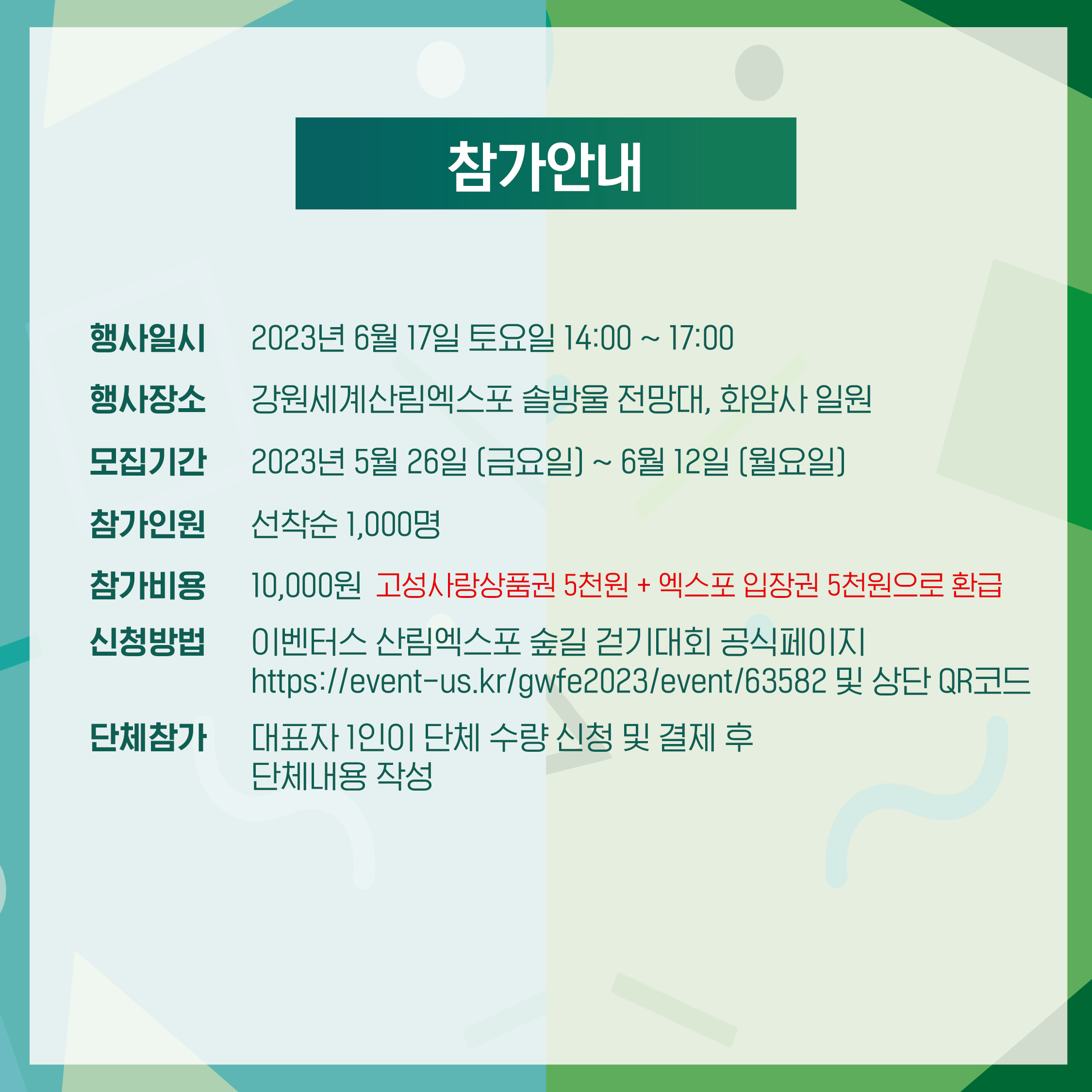 D-100일 숲길걷기대회 팝업창 및 이벤터스 직접등록 (https://event-us.kr/gwfe2023/event/63582)