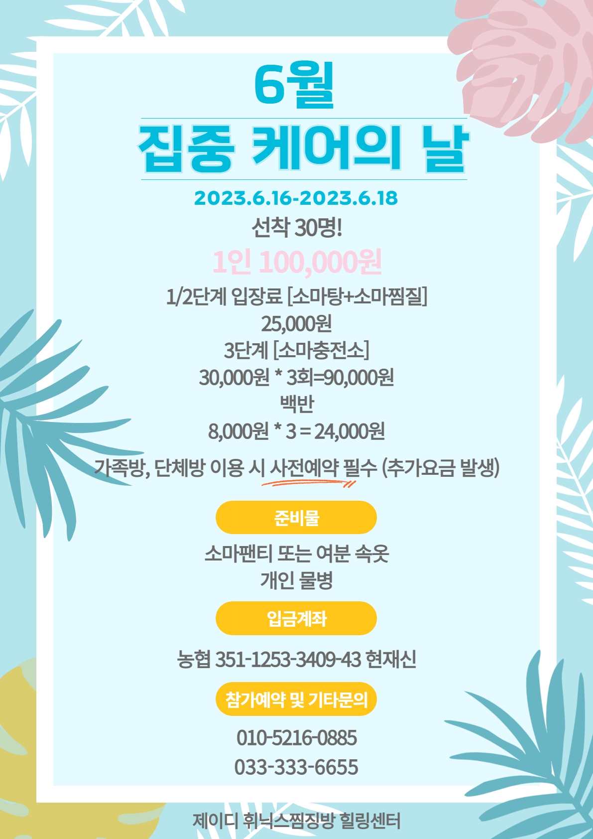 1박 2일 집중케어의 날 행사를 하오니 많은 관심과 참석 부탁드립니다.