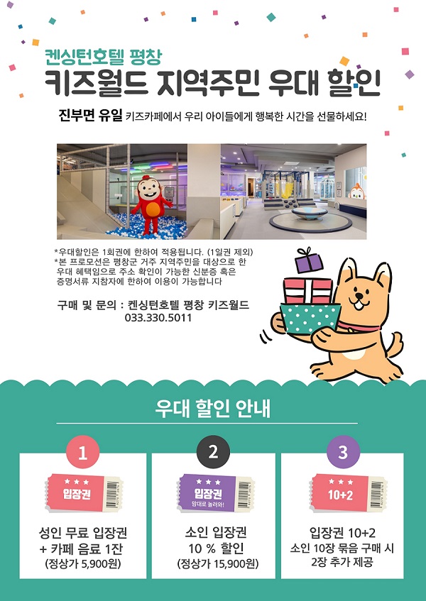 이번 연휴는 켄싱턴호텔 평창 키즈월드에서 할인도 받고 , 아이들에게 즐거운 추억도 선물하세요