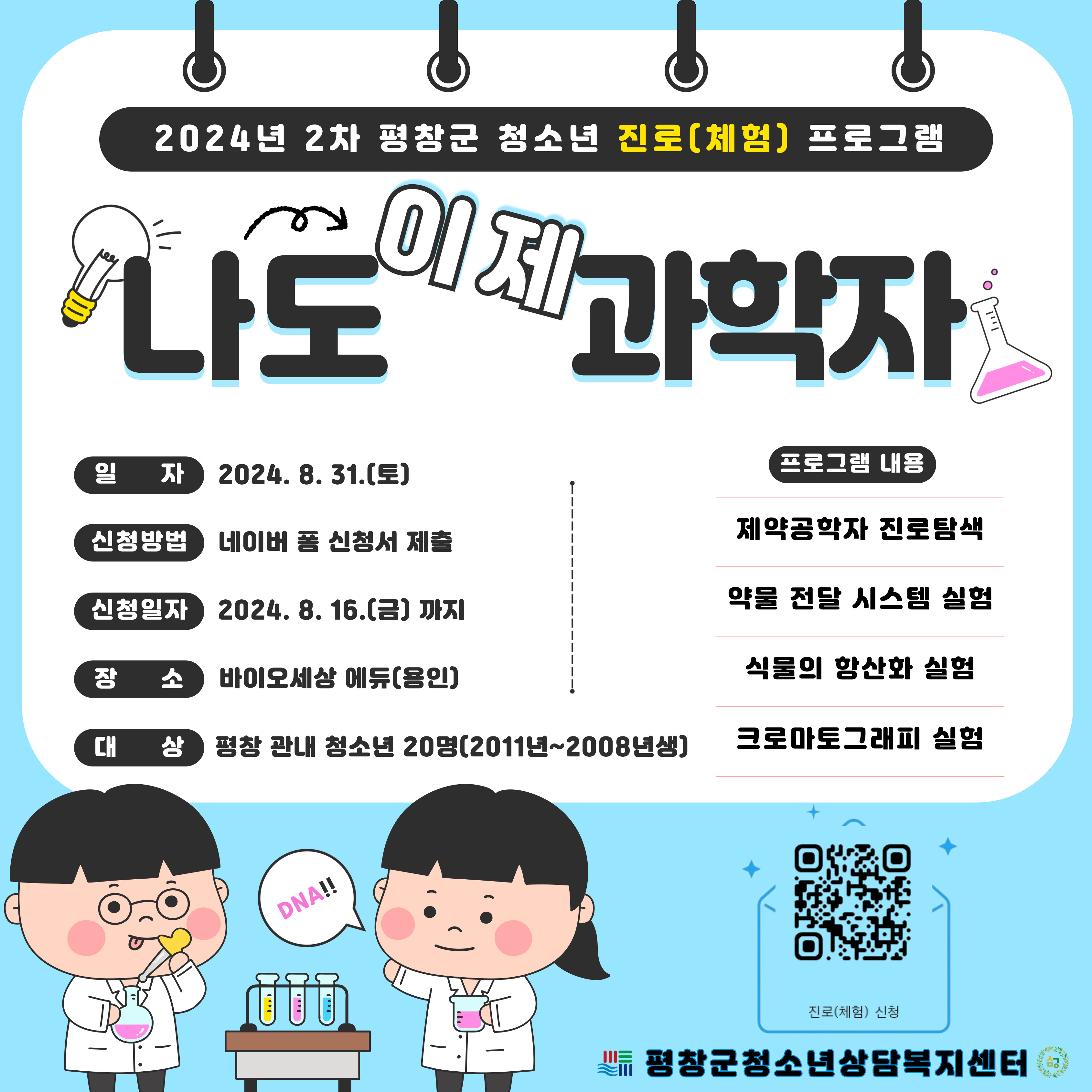 2024년 2차 평창군 청소년 진로(직업)체험 프로그램 안내 - ' 바이오 세상'으로 여러분들 초대합니다. ^^