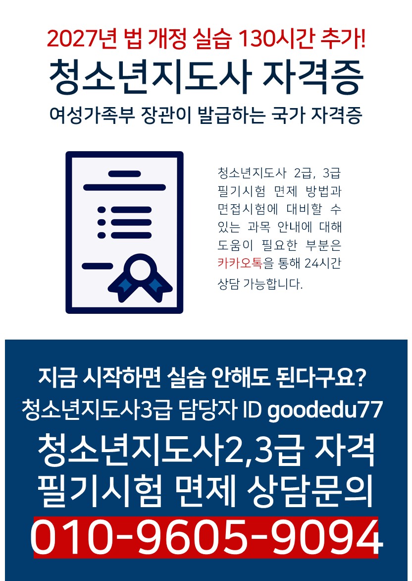 【4개월 과정】청소년지도사2.3급 법 개정전 취득해야하는 이유