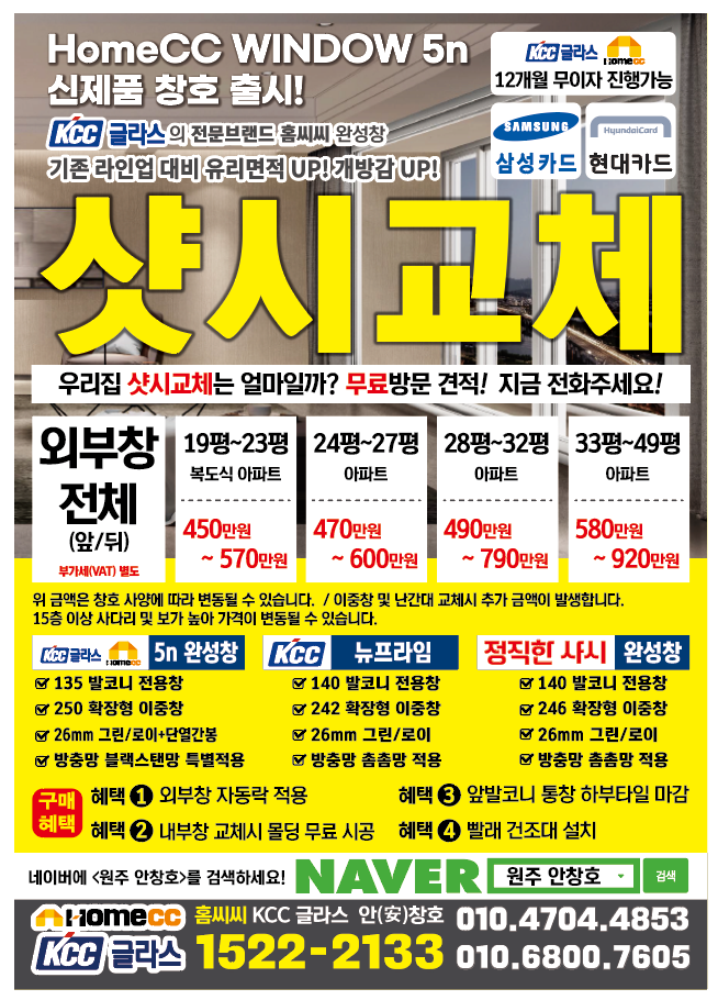 KCC글라스 본사에서 만든 HOMECC완성창 13년보증, KCC, LX zin, DUCOBA 제품을 시공 하고있습니다.