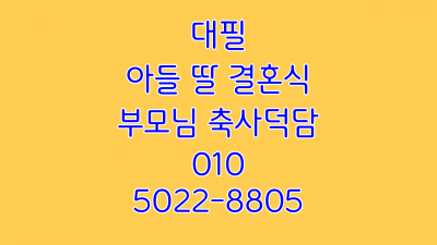 자녀 칭찬 – 아들 결혼 죽사에서 "우리 아들은 든든한 아들이었다."고 칭찬을 해주며, 딸 결혼 덕담에서는 "우리 딸은 따뜻하고 배려심 깊은 아이였습다."고 친창을 해주면서 주인공들을 칭찬해주면 좋습니다.