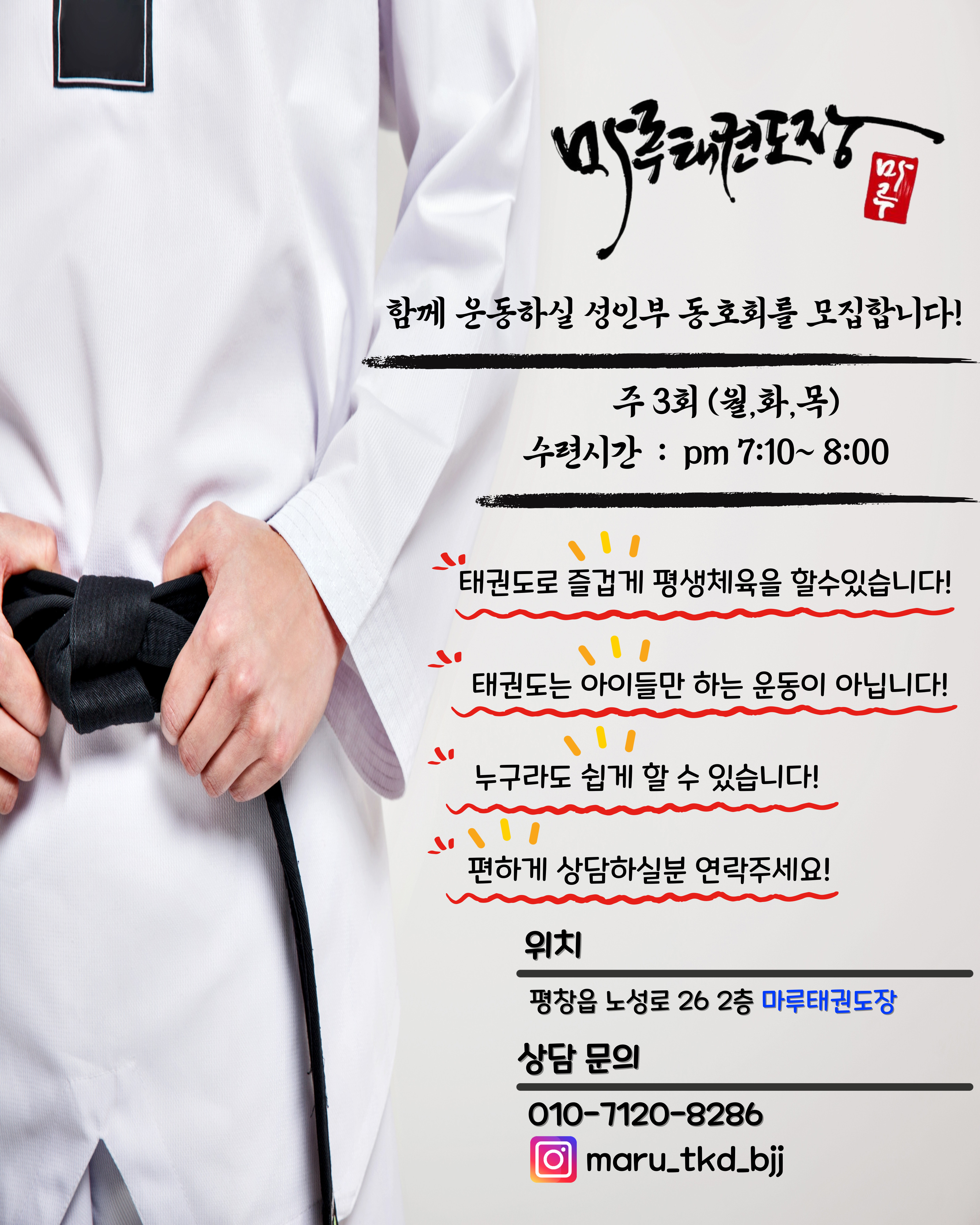 마루태권도장 성인태권도&주짓수 동아리 회원모집합니다~