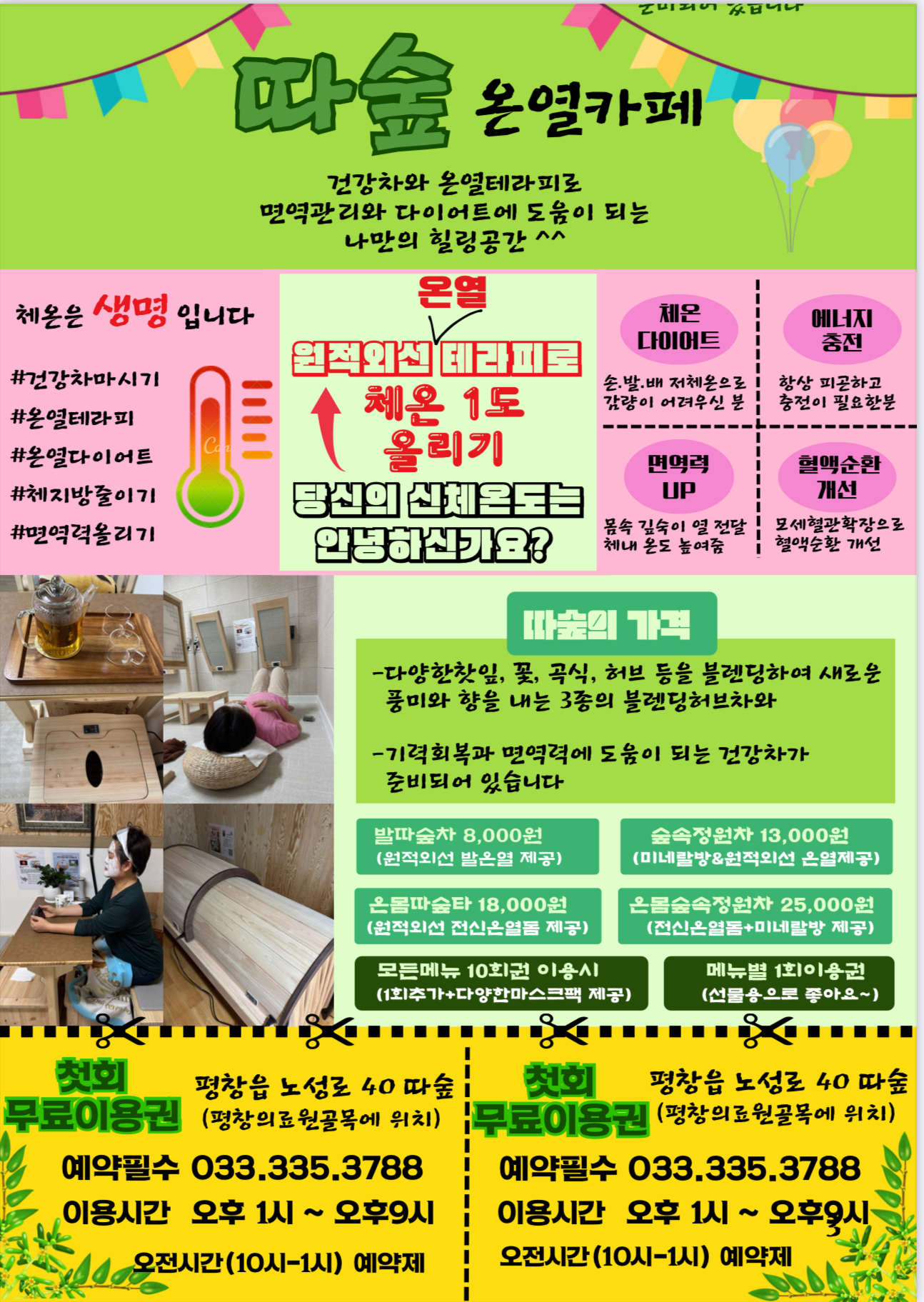 ★몸과맘이 건강해 지는 힐링공간★따숲★평창의료원골목(소리숲음악학원 맞은편)