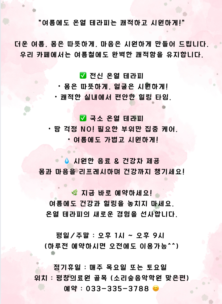 ★따숲★ 몸과맘이 건강해 지는 힐링공간 ★평창의료원골목(소리숲음악학원 맞은편)