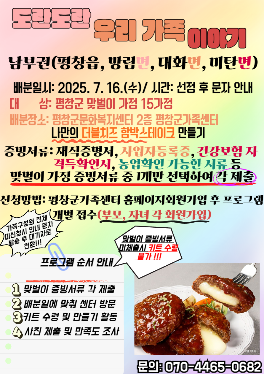 남부권[도란도란 우리 가족 이야기(맞벌이가정 키트배분 사업)] 대상자 모집