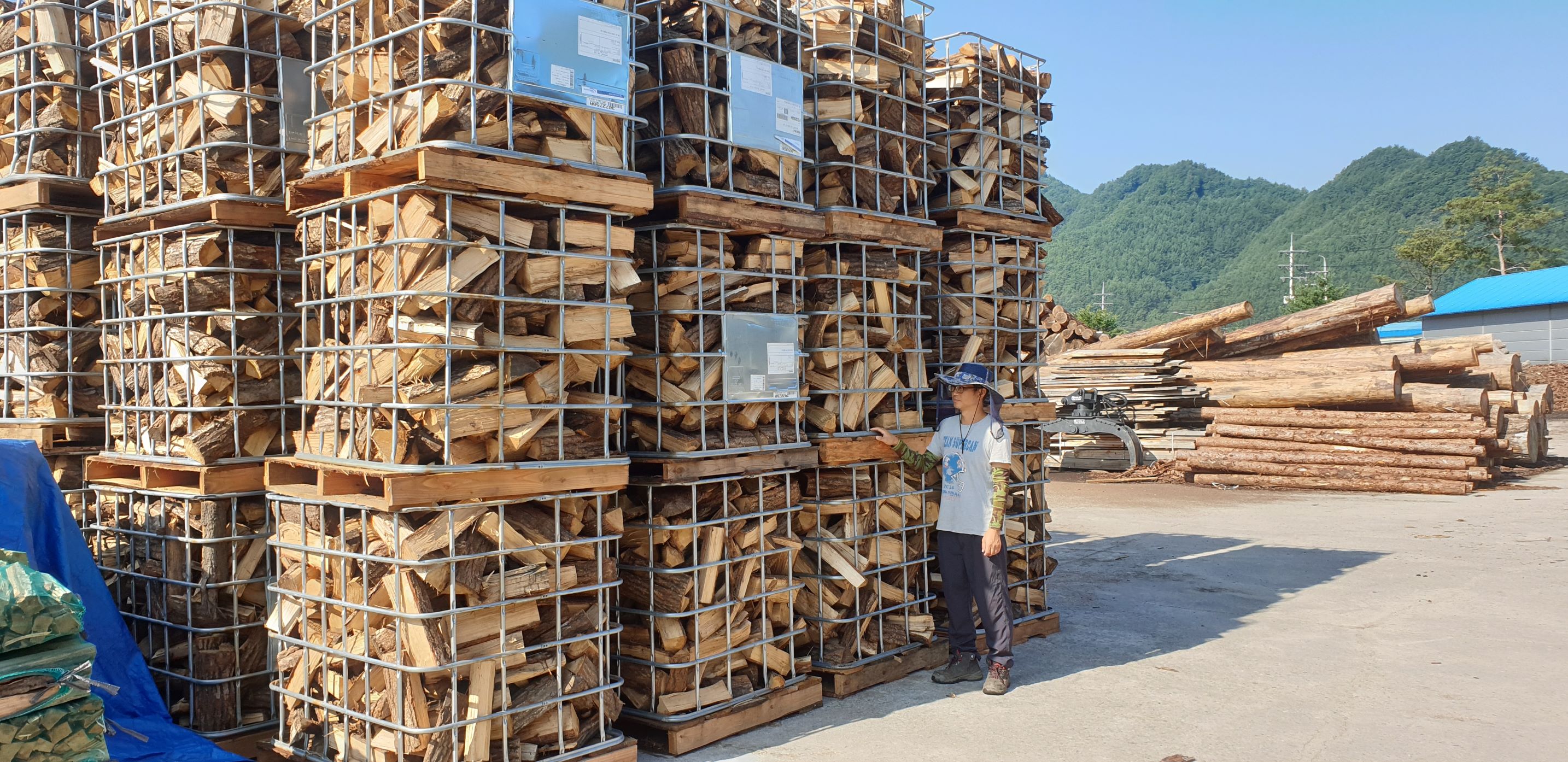 ※ 장작기계로 장작(화목보일러용, 벽난로용)을 제작하여 건조 후 판매