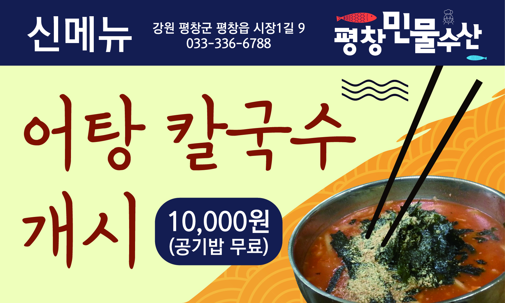 평창민물수산 어탕칼국수 개시