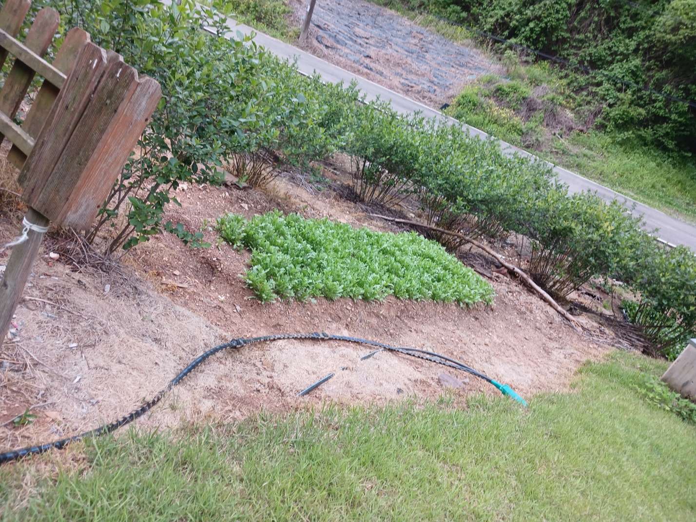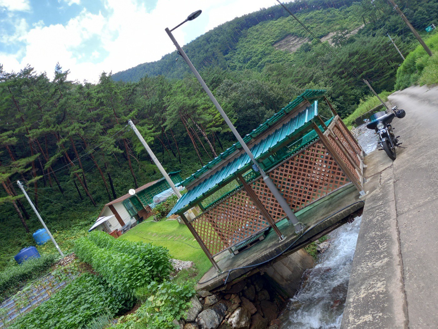 하천정리, 지하수, 아로니아320주, 창고2개, 잔디길, 주변 소나무 가득.(국유림)