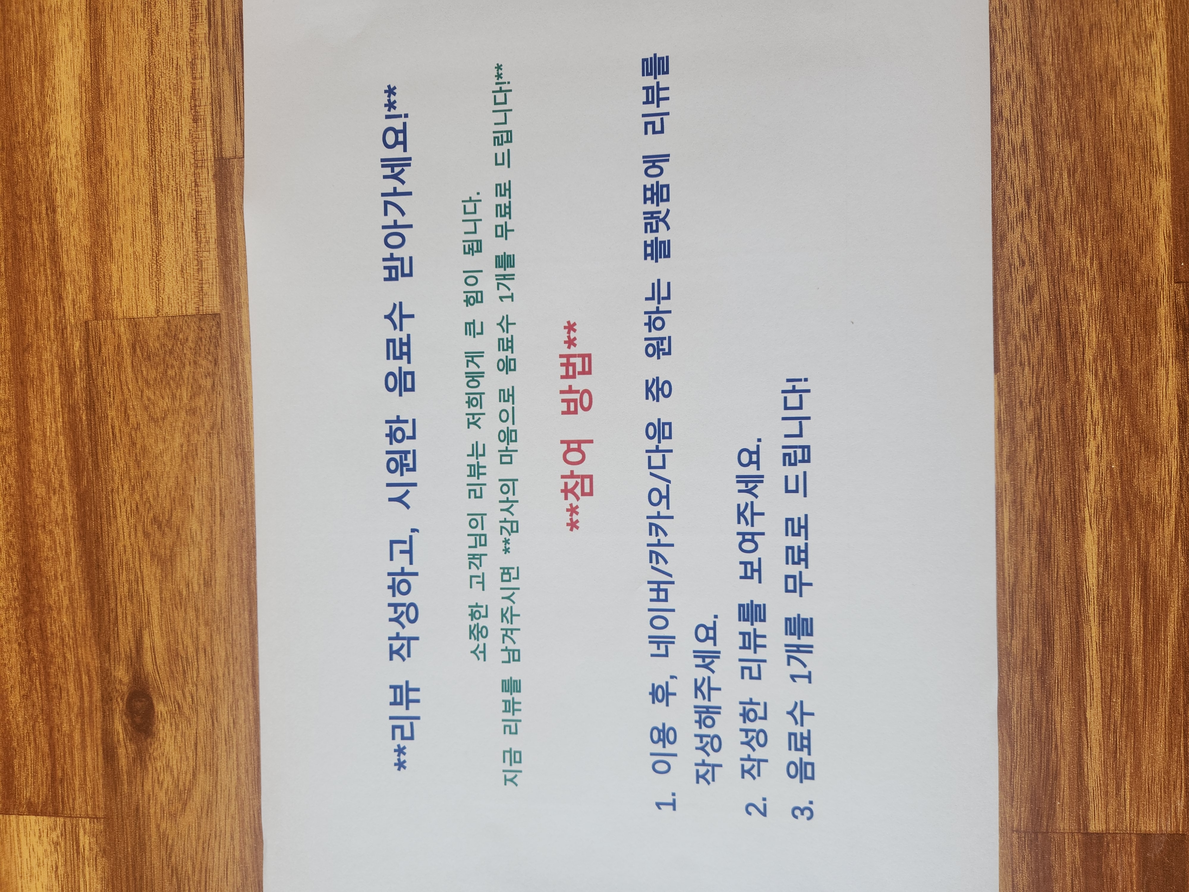 *매장방문 후 리뷰 남기시면 음료수가 공짜~~^^
