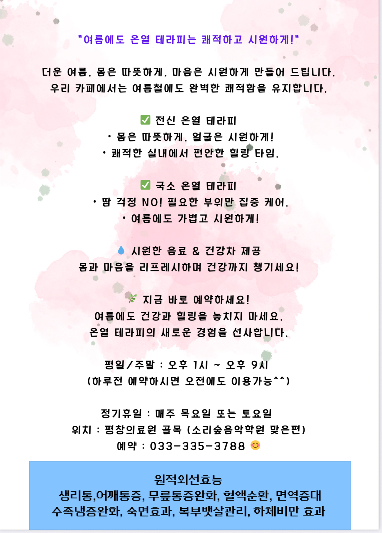 ★따숲★ 몸과맘이 건강해 지는 힐링공간 ★평창의료원골목(소리숲음악학원 맞은편)