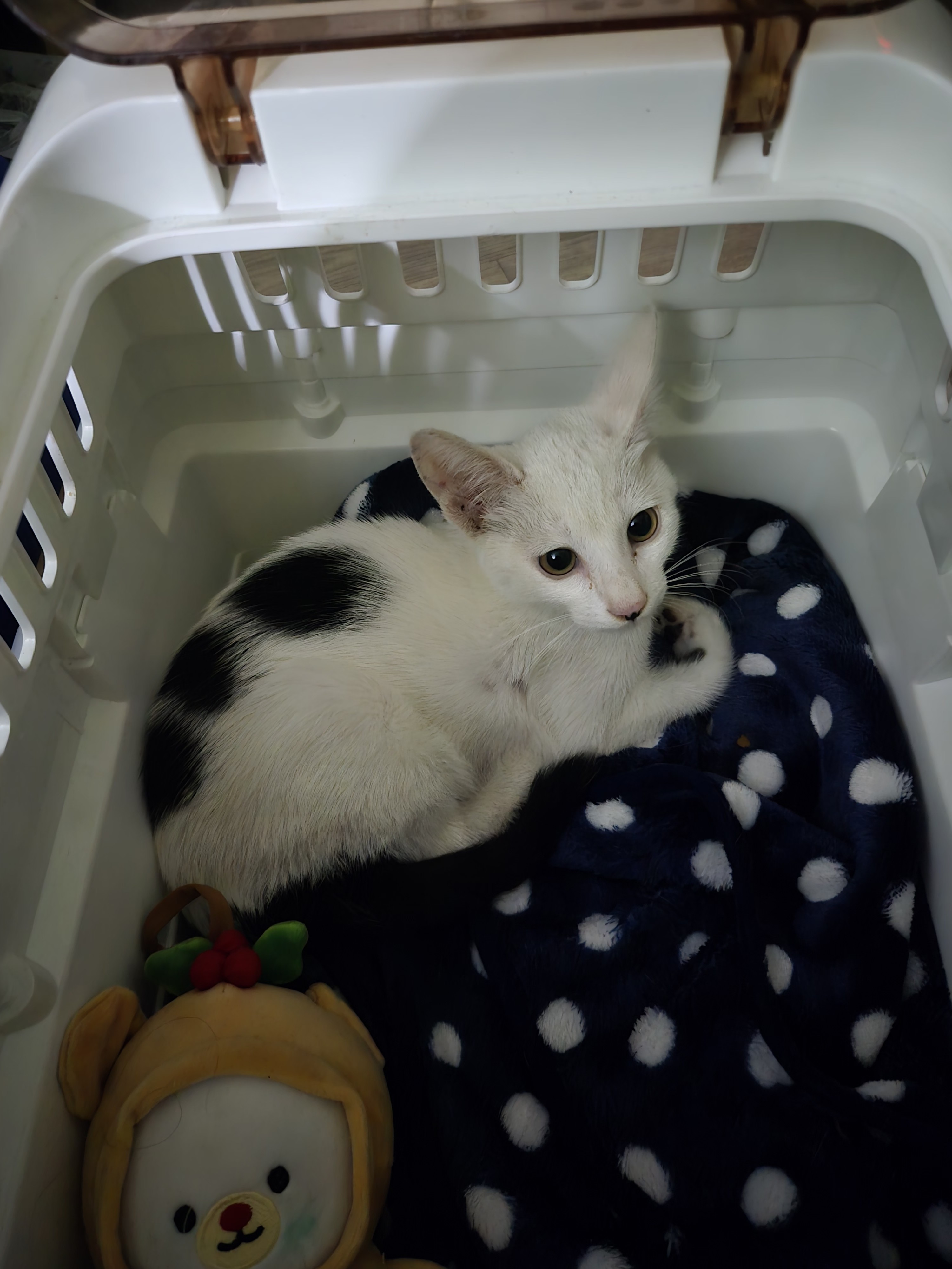 평창 다이소 앞에서 구조하였습니다. 사람에 손을 타기에 보호할수 있었습니다!