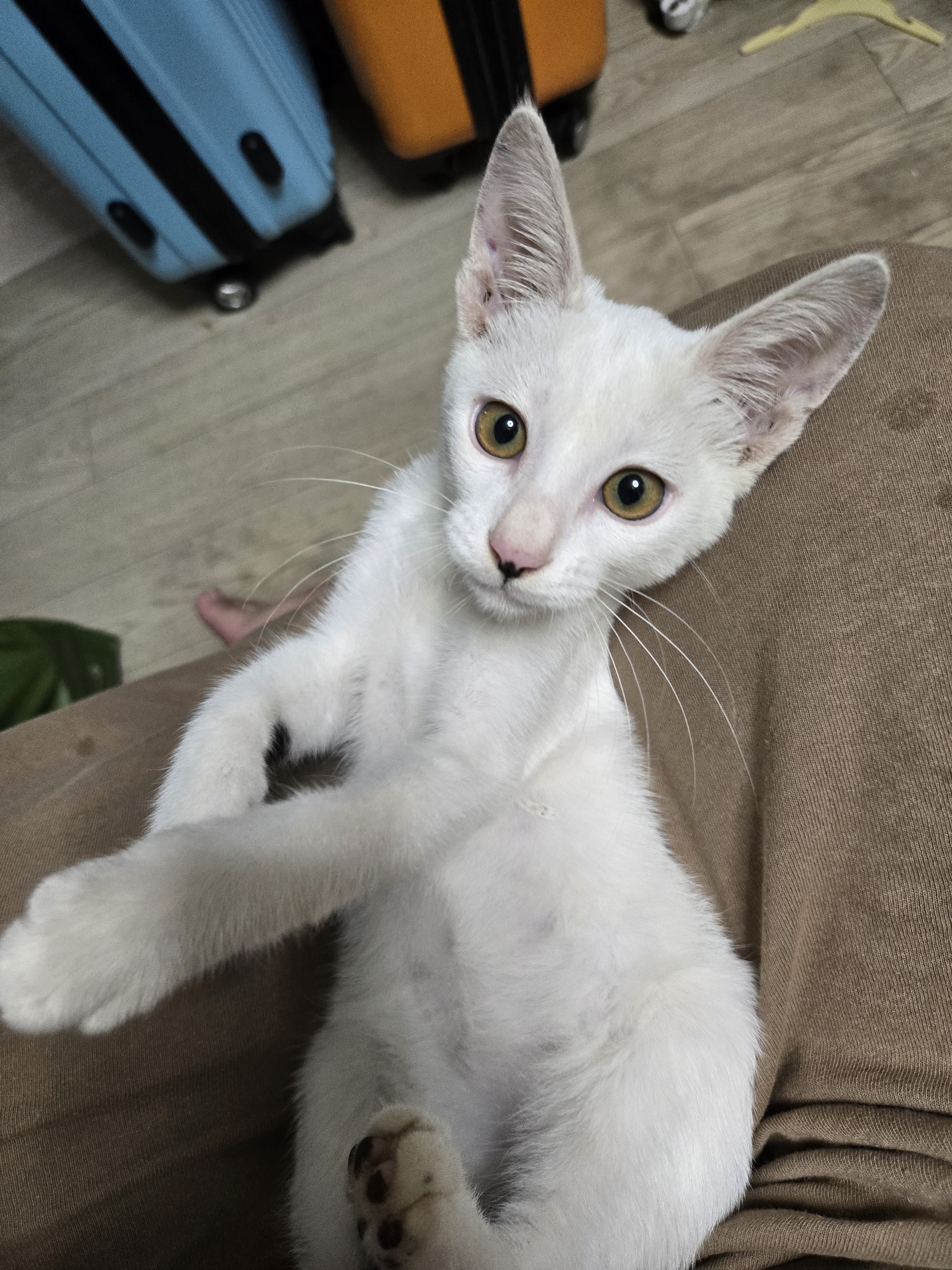 저는 사정이 되지않아 키울수 없어 임보 중입니다~ 애교도 많고 아직 아기고양이로 보여집니다 책임감 있으시고 사랑많이 주실 집사님을 찾고있습니다~ 혼자도 잘 놀고 잘땐 꼭 옆에 붙어 자기도 합니다 낫가림도 없어서 귀엽습니다!! 무늬가 동글동글 있어 현재 이름은 땡이 입니다~