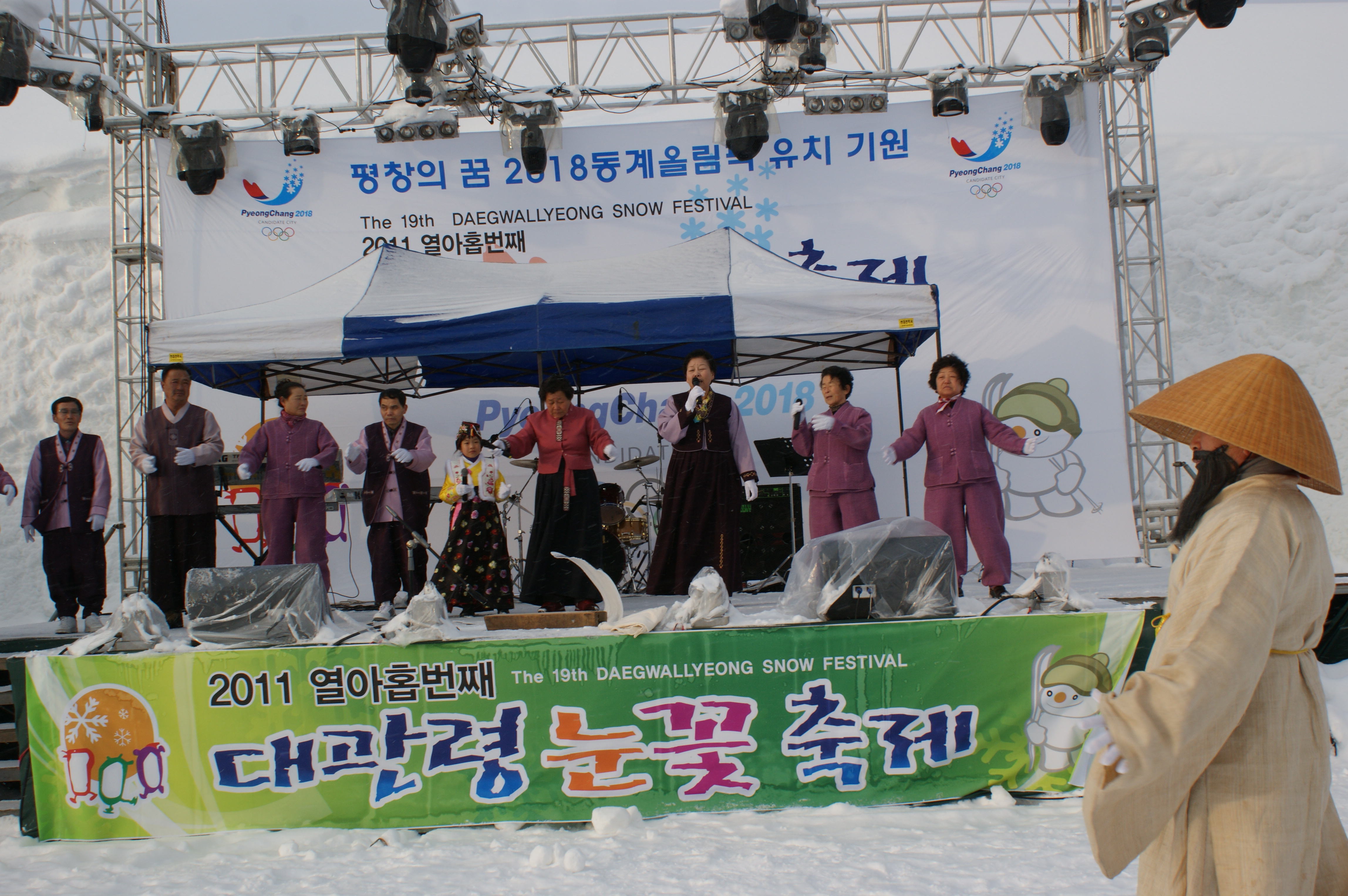 2011,2,14 눈꽃축제 평창아라리 공연, 대관령면 횡계리 동계실사단환영식 참가