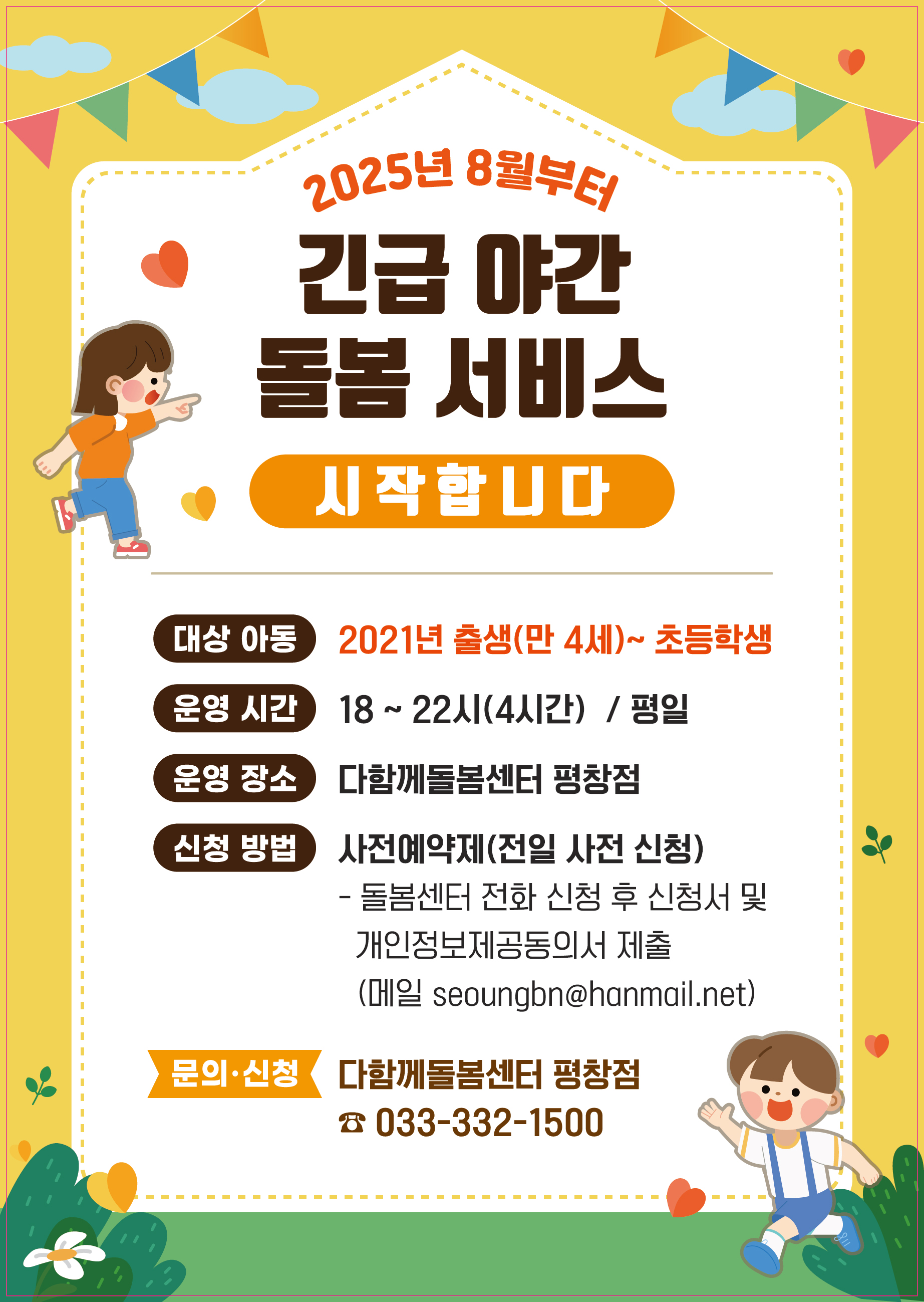 기존 센터 이용 아동뿐만 아니라 긴급 야간돌봄서비스가 필요한 아동 누구나 사전 신청을 통해 서비스를 이용 할 수 있습니다.