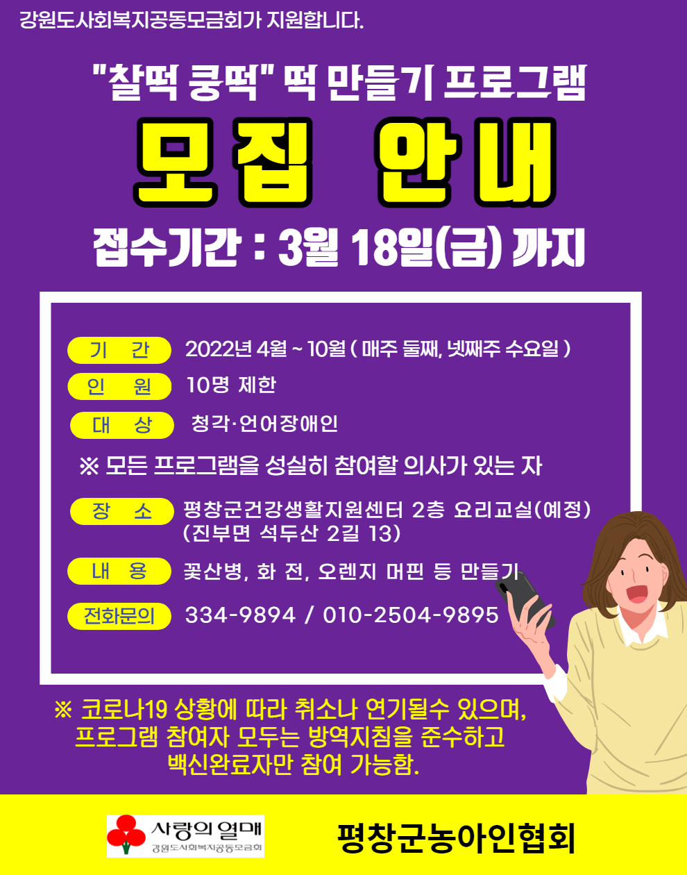 평창군농아인협회 "찰떡 쿵떡" 떡 만들기 프로그램 모집 안내