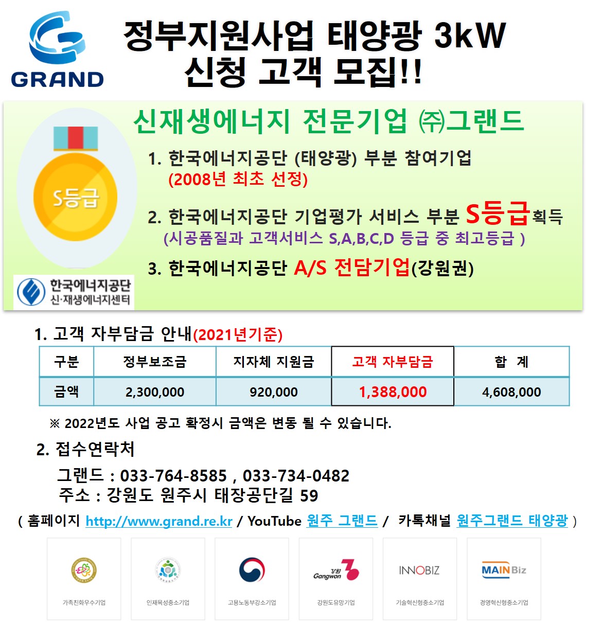 매년 한국에너지공단에서는 지원하는 태양광 설치 지원사업이 올해도 진행될 예정입니다.