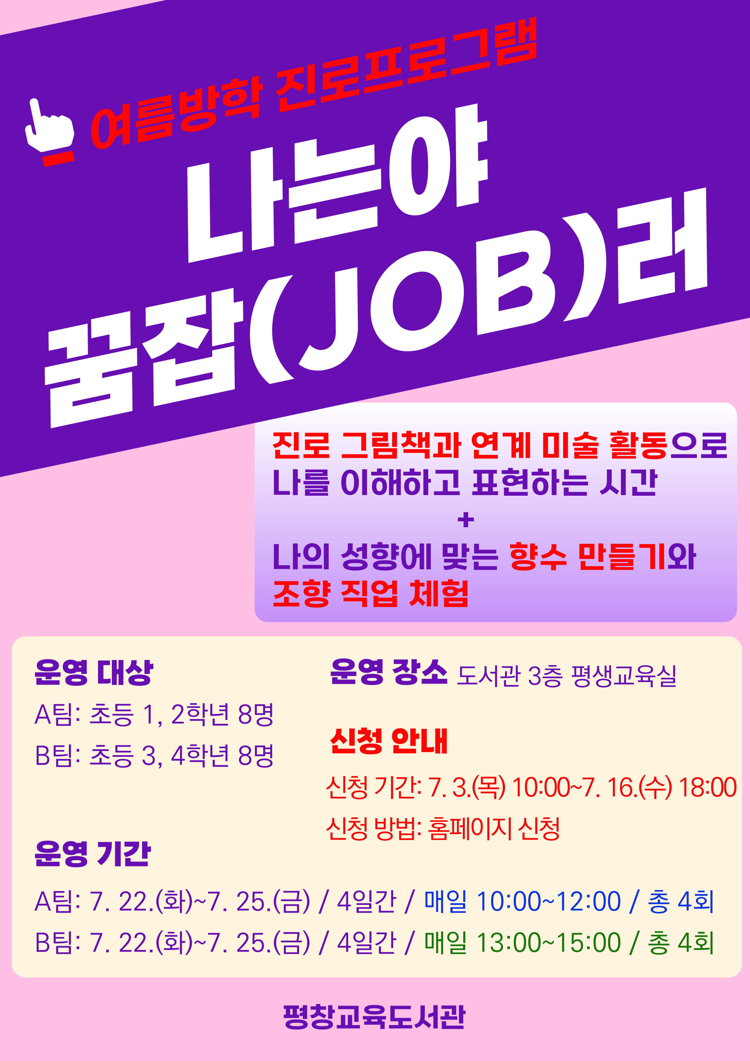 [평창교육도서관] 나는야 꿈잡(Job)러 진로프로그램 신청안내