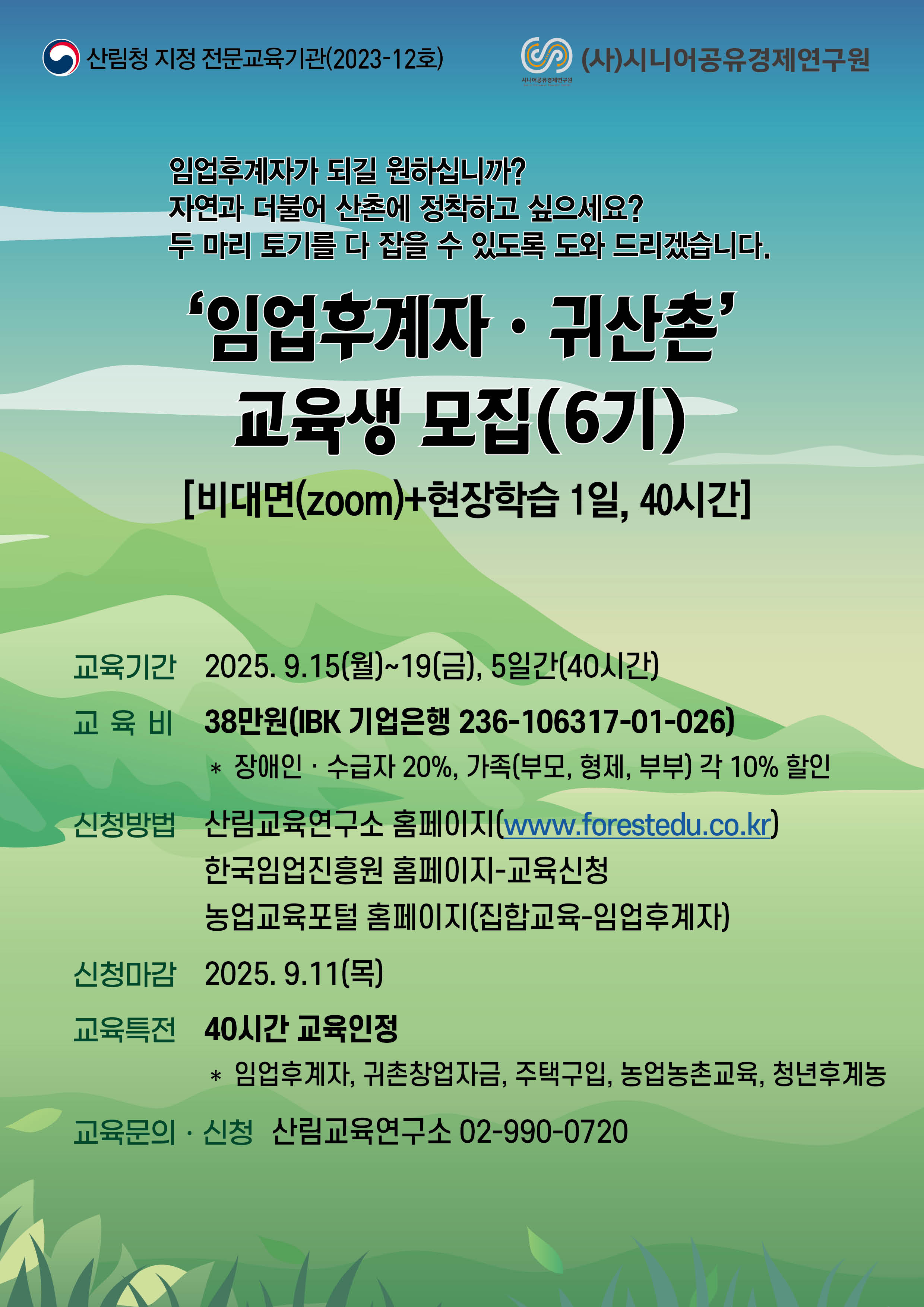 2025년 임업후계자 및 귀산촌 교육 안내(6기)