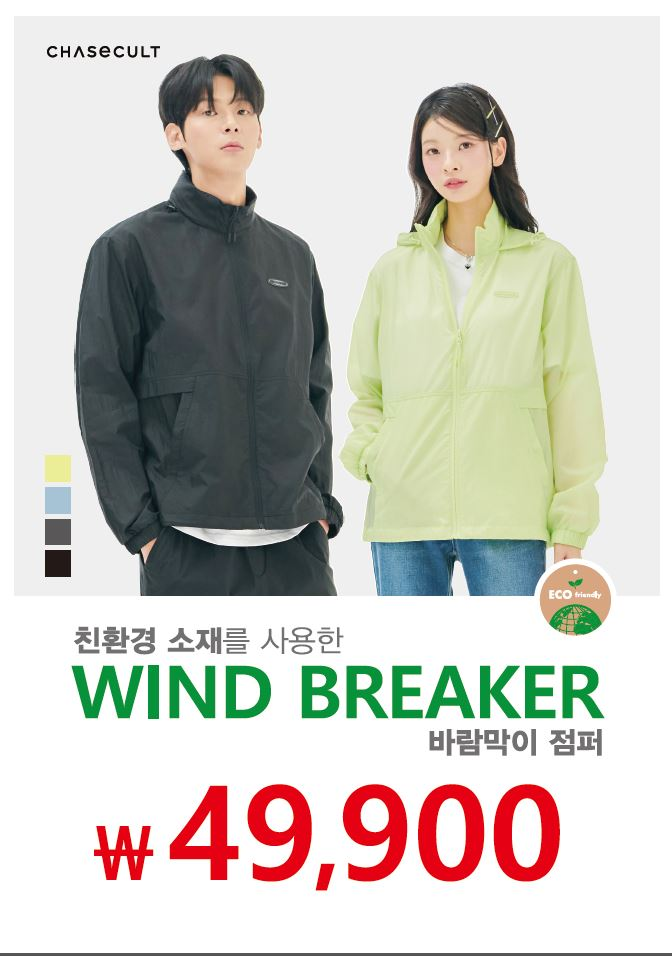 " 친환경 소재"를 이용한 "성인 바람막이점퍼 !!"