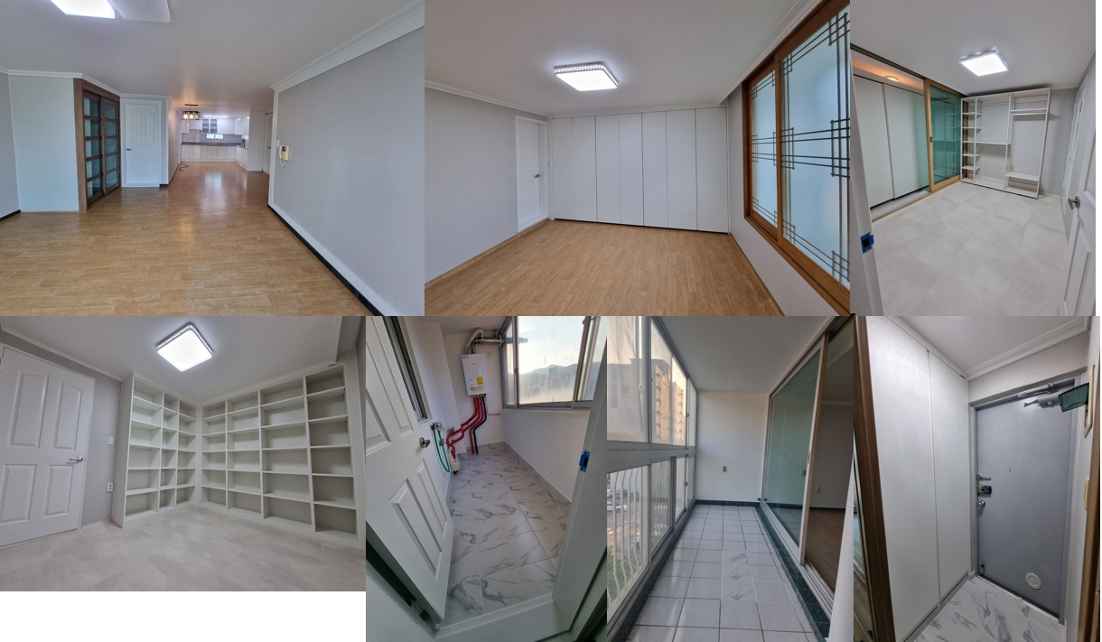 - 거실 / 주방 / 방 3개 / 넓은 베란다 1개 + 작은 베란다 1개 / 보일러실