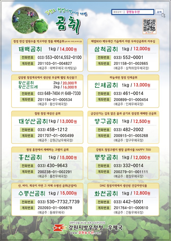 o 판매방법 : 양구곰취 등 10개지역 생산 곰취