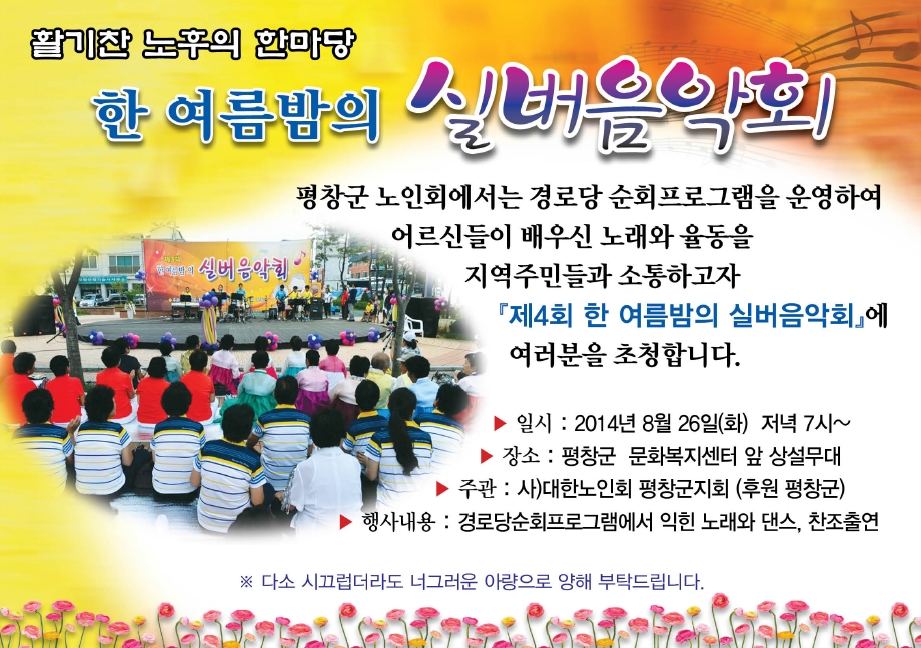 "한여름밤의 실버음악회"로 여러분을 초대합니다.