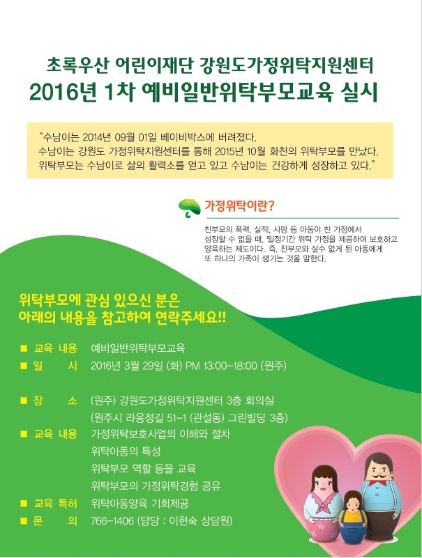 2016년 1차 예비일반위탁부모교육 실시 안내