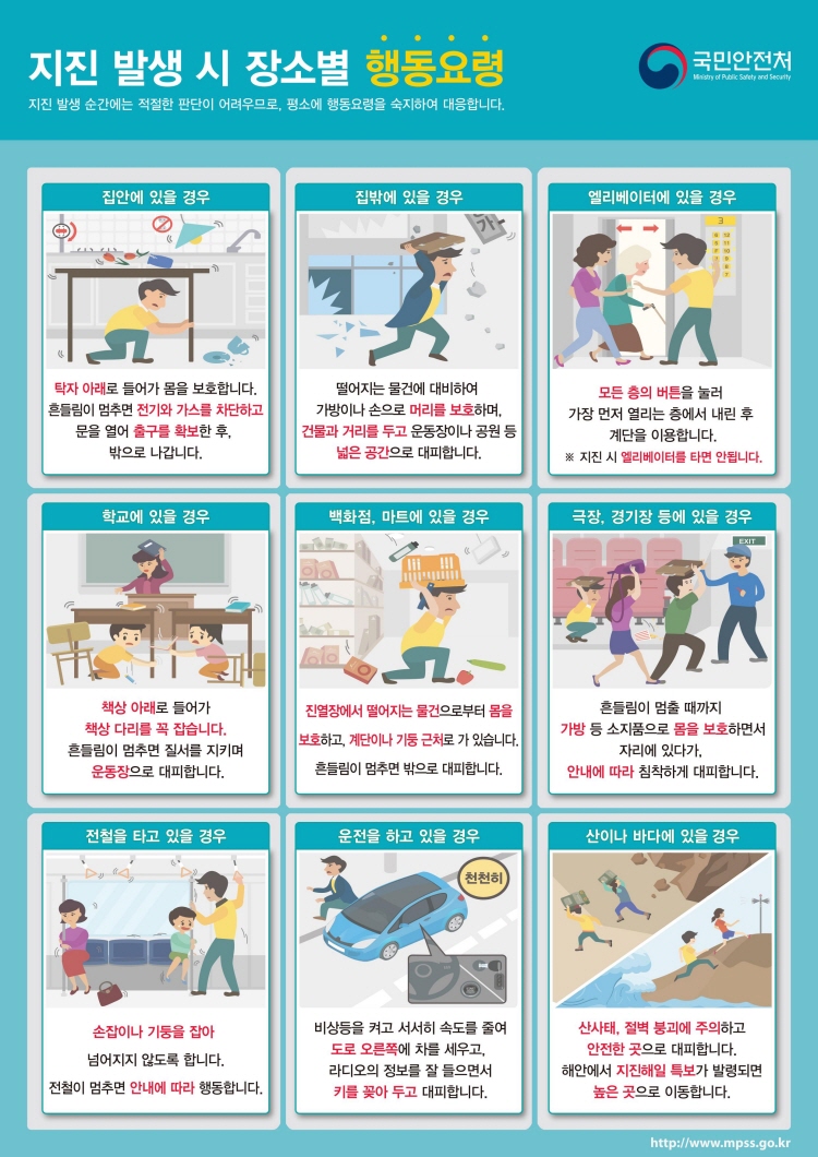 지진 발생 시 인명피해를 예방하시기 바랍니다.