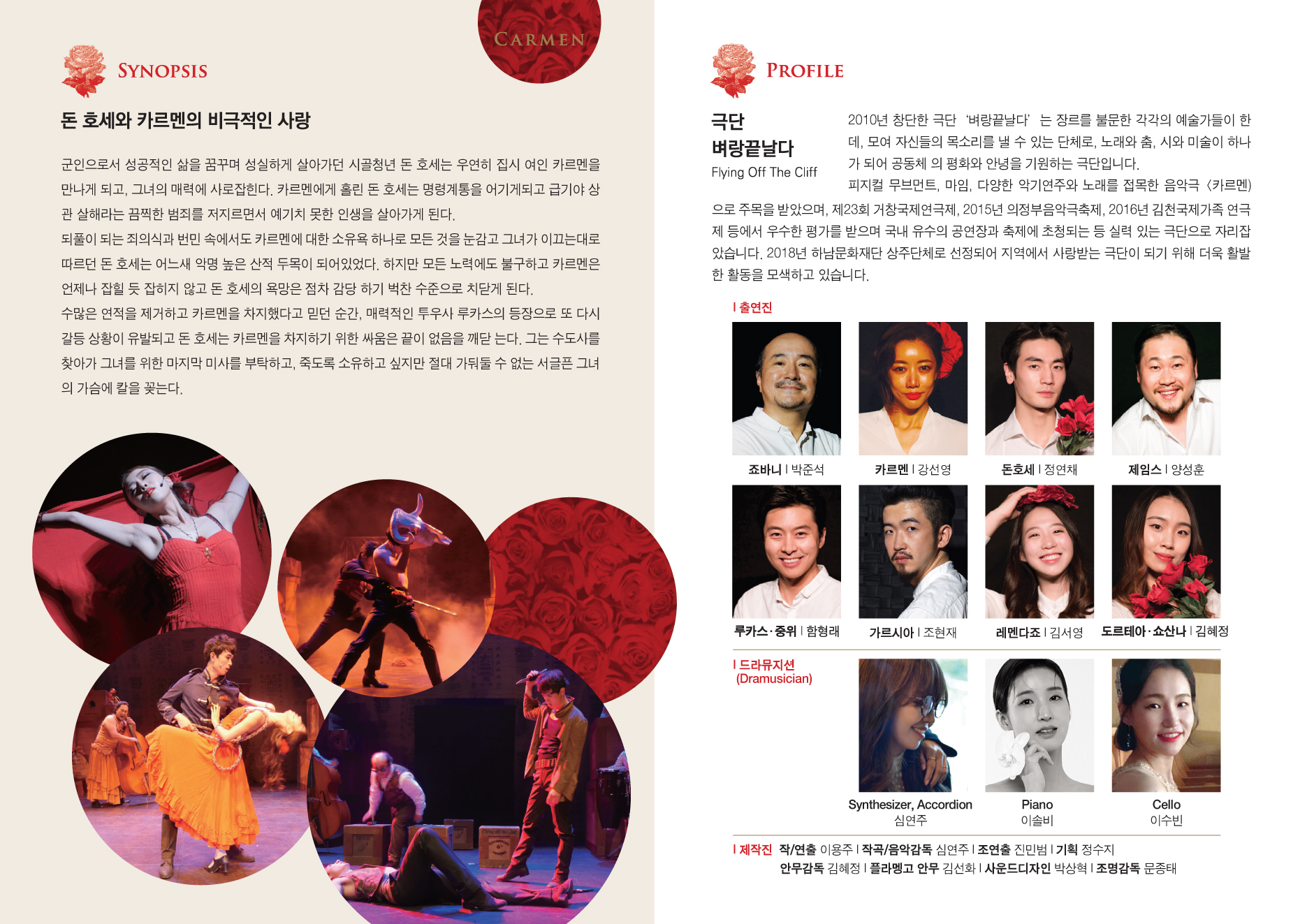 카르멘의 아름답고 자유로운 삶과 돈 호세의 단 한 번의 불꽃 같은 사랑, 100분간의 뜨거운 열정의 무대로 여러분을 초대합니다.