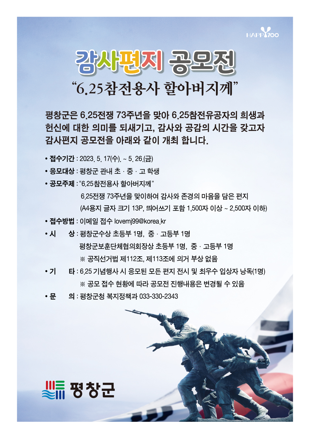 감사편지 공모전 "6.25참전용사 할아버지께"  참여 안내