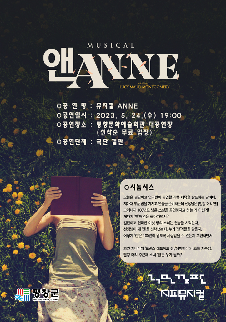 뮤지컬 「ANNE」 공연을 아래와 같이 개최하오니 군민여러분의 많은 참여 바랍니다.