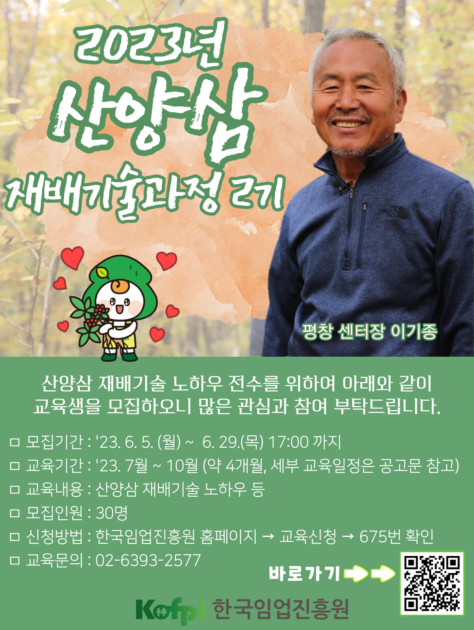 「2023년 산양삼 재배기술 교육과정」2기 교육생 모집
