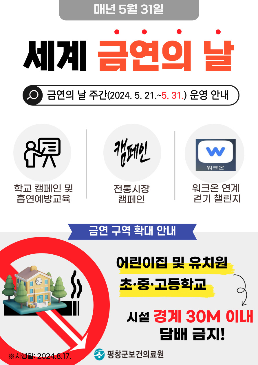 평창군보건의료원 건강증진팀에서 세계 금연의 날(매년 5. 31.)을 맞아 금연의 날 홍보 및 캠페인을 운영합니다.