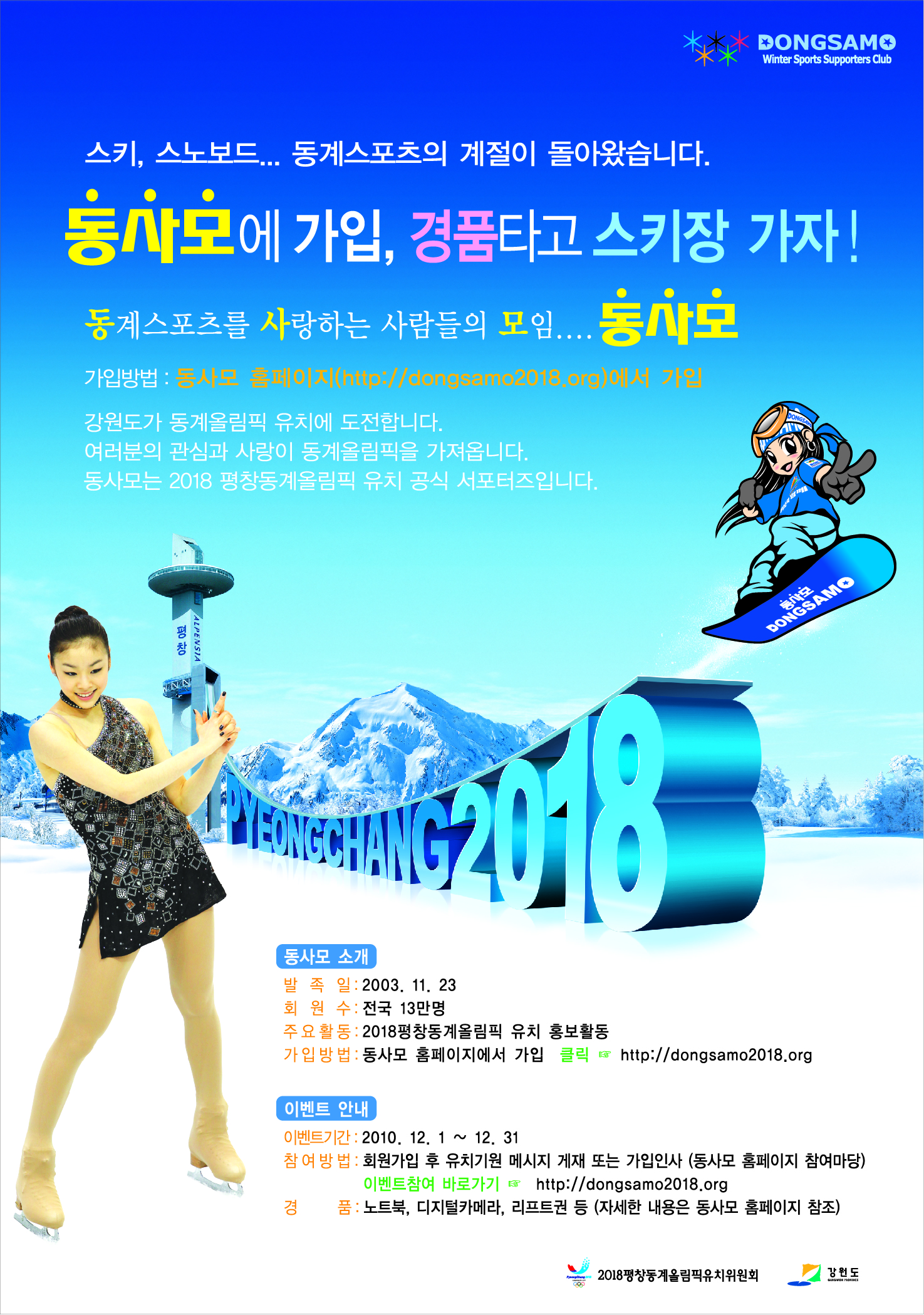 - 경품 : 노트북, 디지털카메라, 리프트권 등(자세한 내용은 동사모 홈페이지 참조)