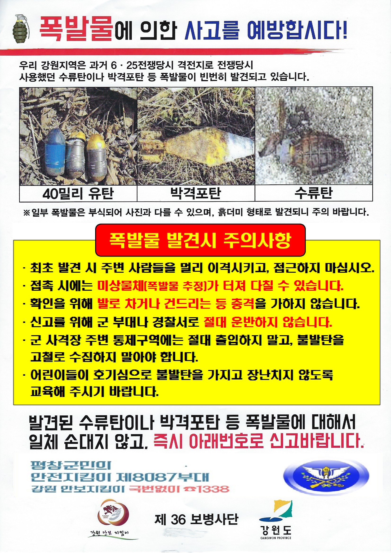 폭발물 발견시 주의사항을 아래와 같이 안내드립니다.