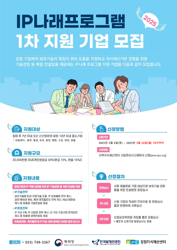2025년 1차 IP나래 프로그램 지원사업 연장 공고