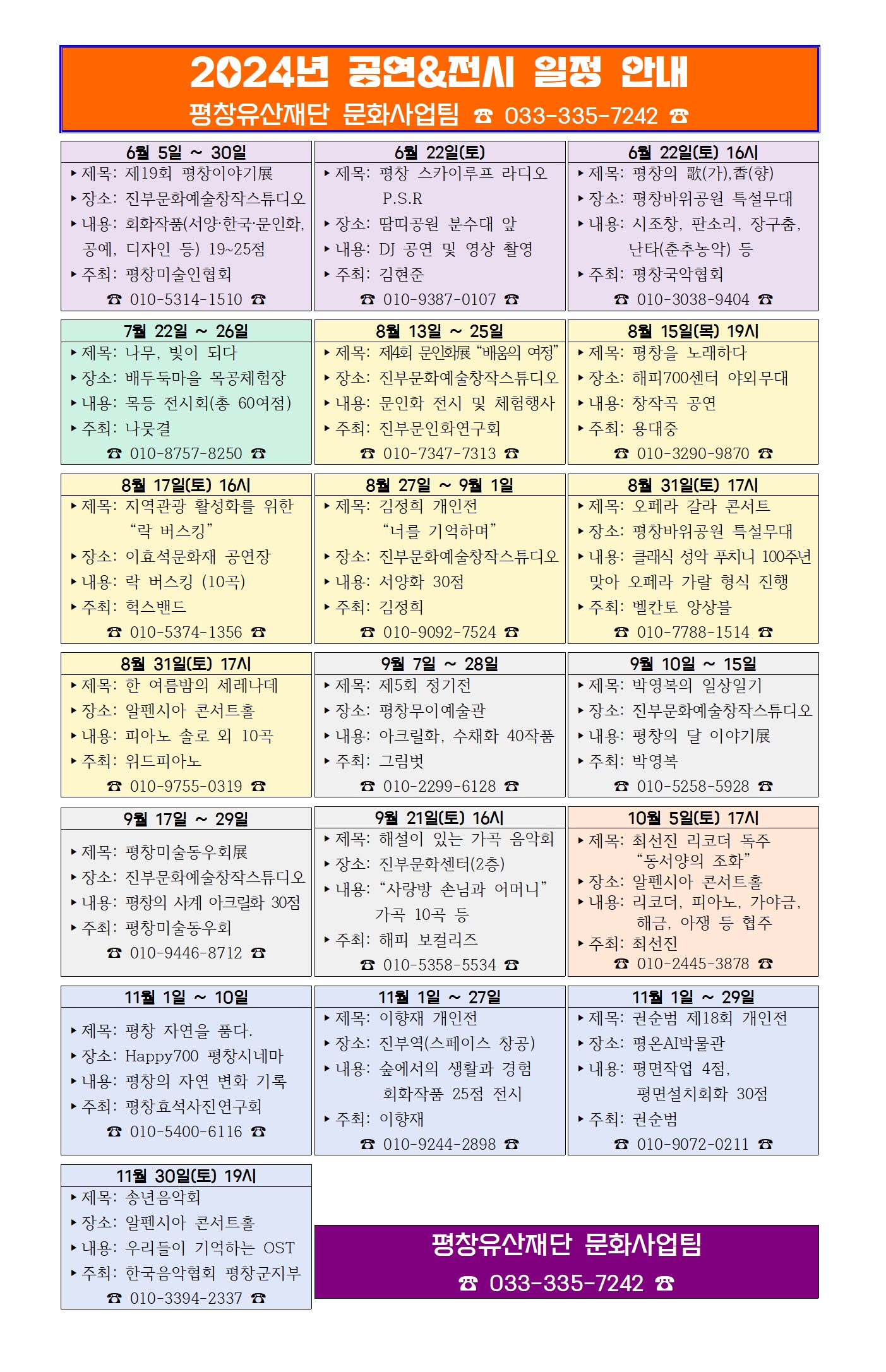 - 2024년 평창군 문화육성지원사업 공연전시 일정표