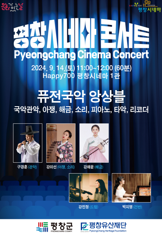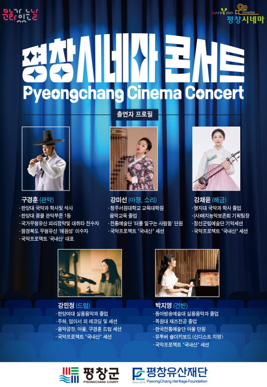 지역 주민분들에게 문화 복지 기회 향상에 기여하고자 평창 시네마 콘서트를 개최하니 많은 관심 부탁드립니다.