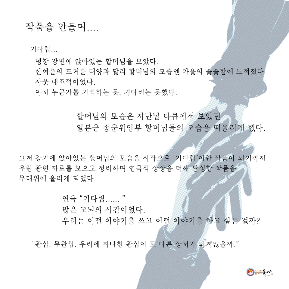 깊어가는 가을 연극공연 ‘기다림’을 준비하였습니다.
