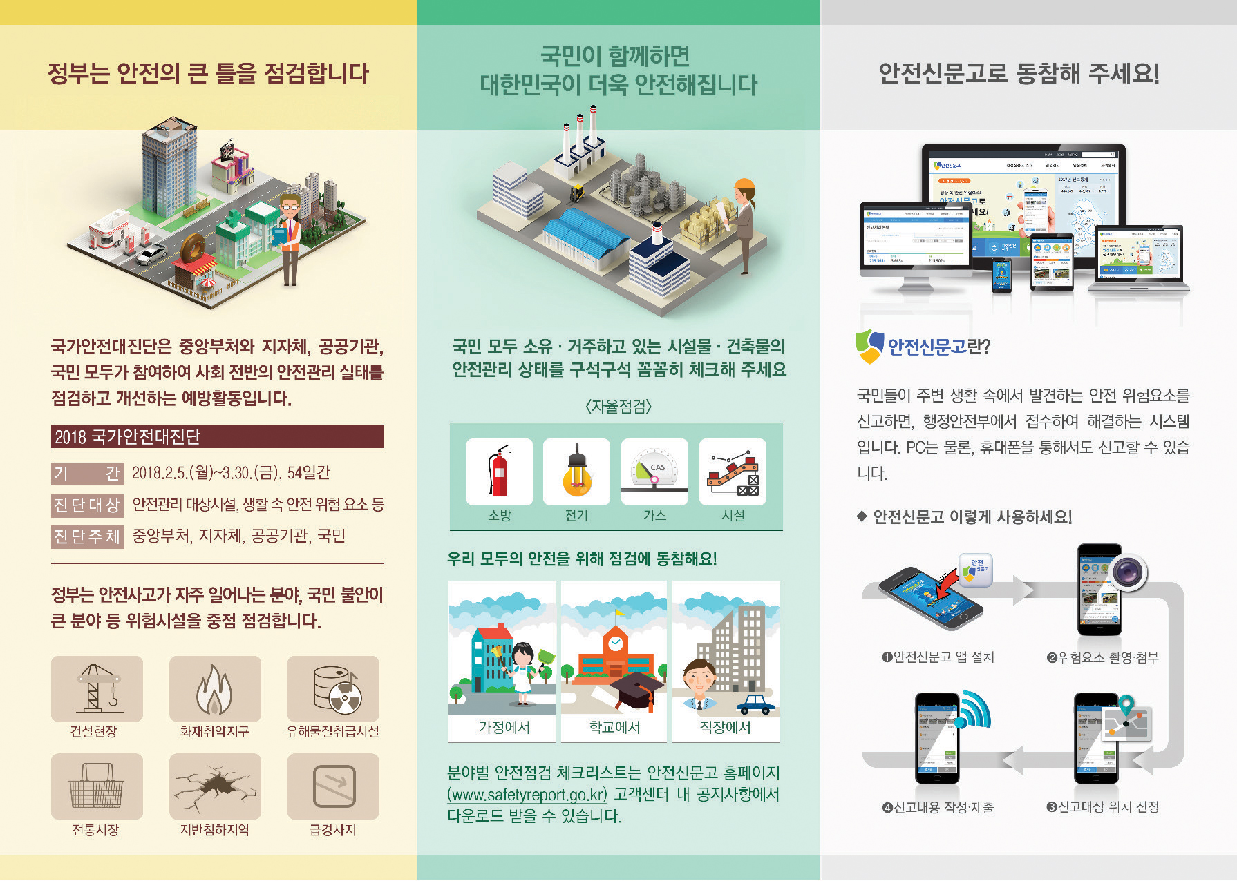 우리군은 상수도 용수보급 지연, 주민식수 오염등을 미연에 방지하고자 상수도분야(취수장5개소·정수장5개소)에 대한 안전점검을 실시('18.2.5~3.30)하고 있습니다. 주민 여러분의 관심과 참여 부탁드립니다.