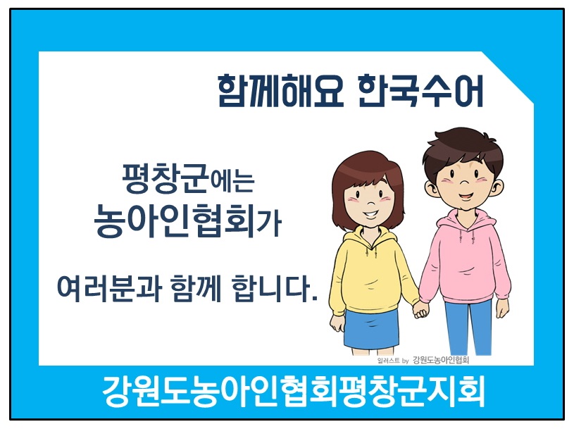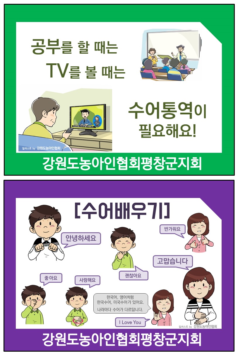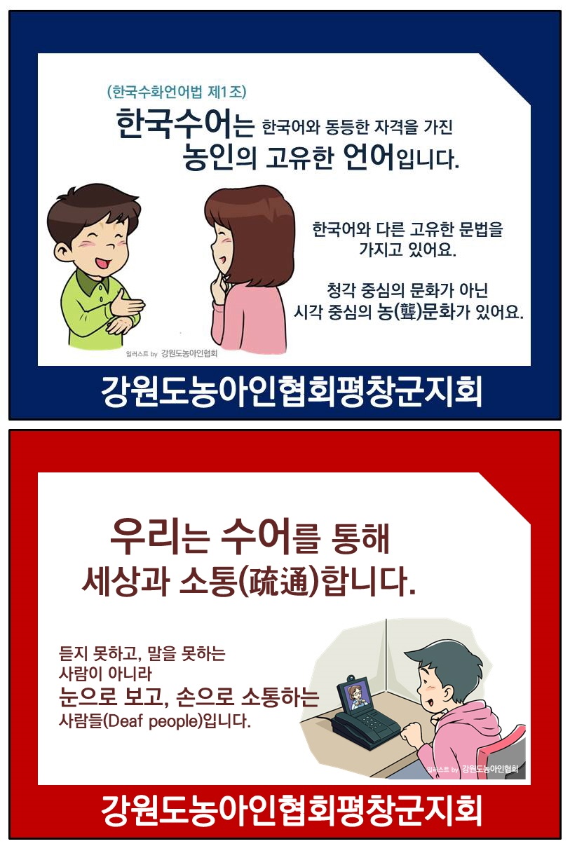 한국수어와 농아인(청각장애인)에 많은 관심을 부탁드립니다.