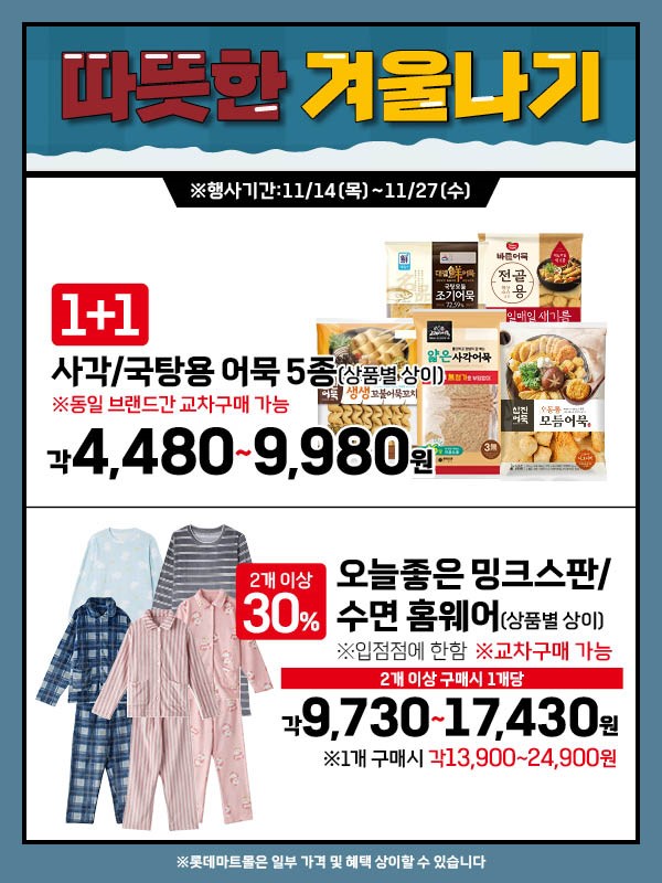 【하루·주말특가 | 50%·1+1 | 겨울 득템 찬스】