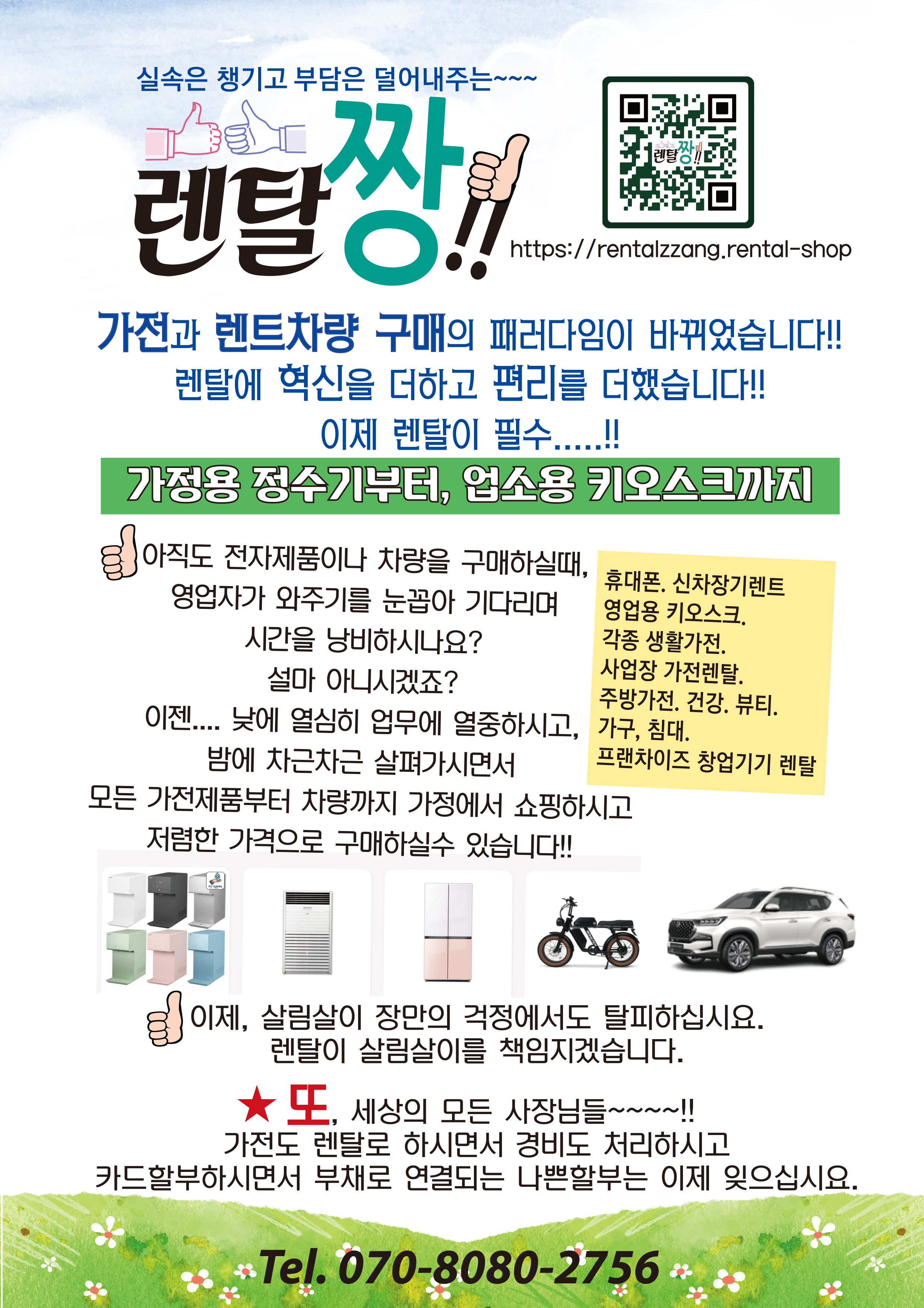 세상의 모든 가전제품이나 업소용 키오스크 등 모든 업소용 장비가 렌탈로 구입가능해졌습니다.