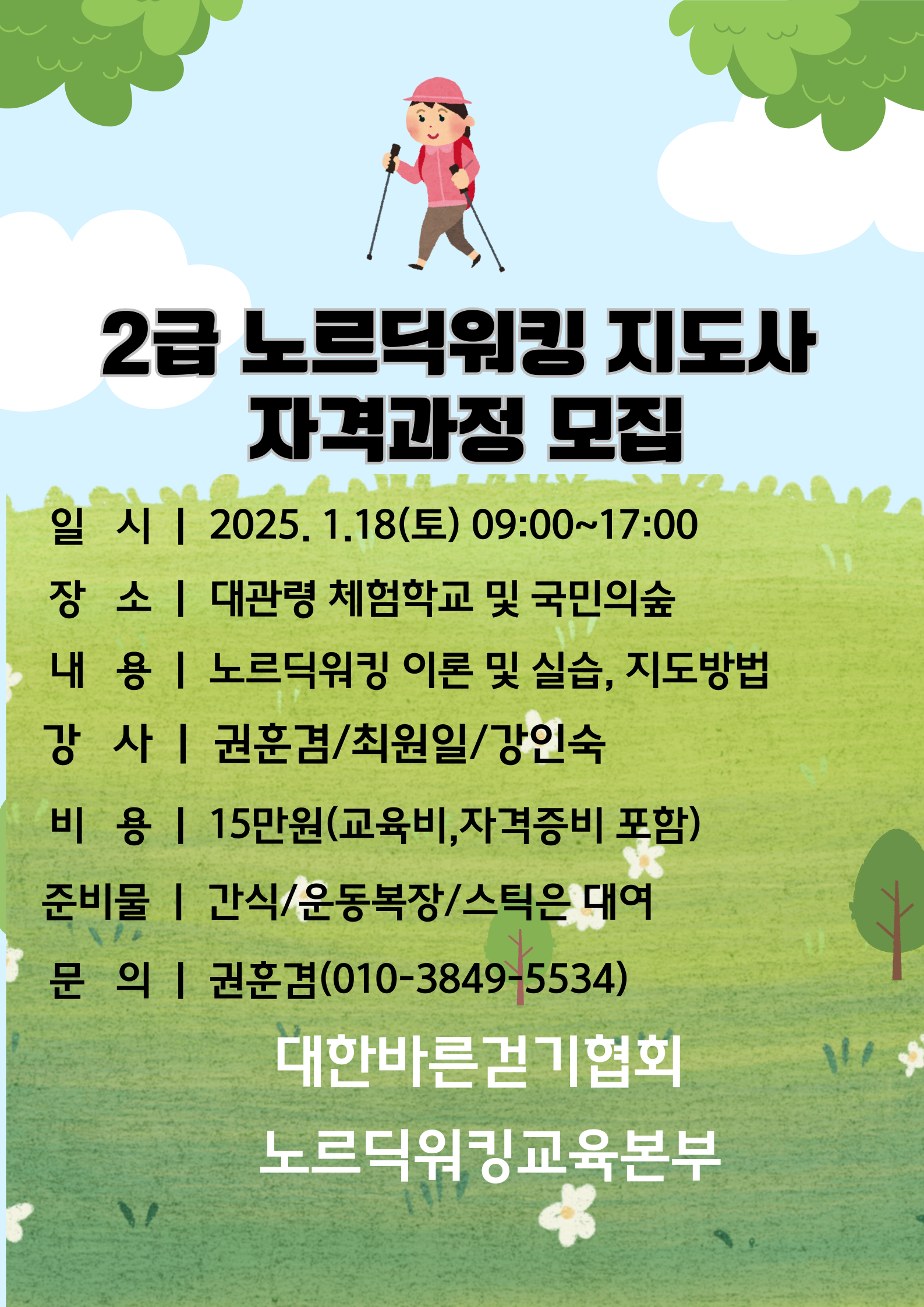 2급 노르딕워킹지도사 자격과정 참가자 모집