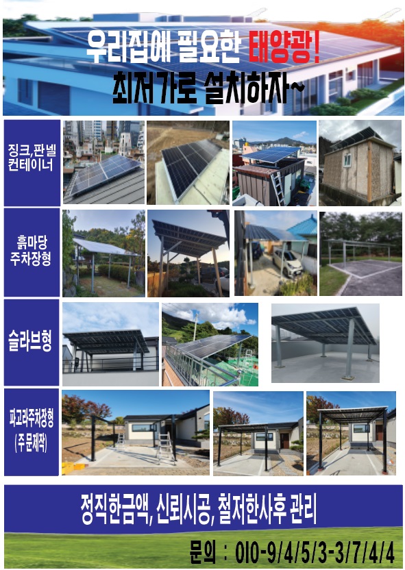 1. 징크, 판넬 지붕부착형 3kw 바로설치 (₩320만원)