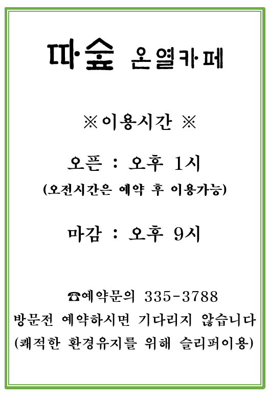 ★★따숲 온열카페★★영업시간변경 오후1시~오후9시 (오전은 예약만 가능)★★